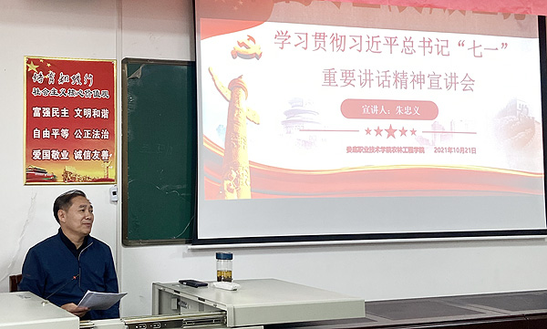 10月21日下午,我校党委委员来到所联系的二级学院,为教职工宣讲习近平总书记“七一”重要讲话精神。这是我校学习贯彻习近平总书记“七一”重要讲话精神,切实把全校师生员工的思想和行动统一到讲话精神上来的又一具体举措。