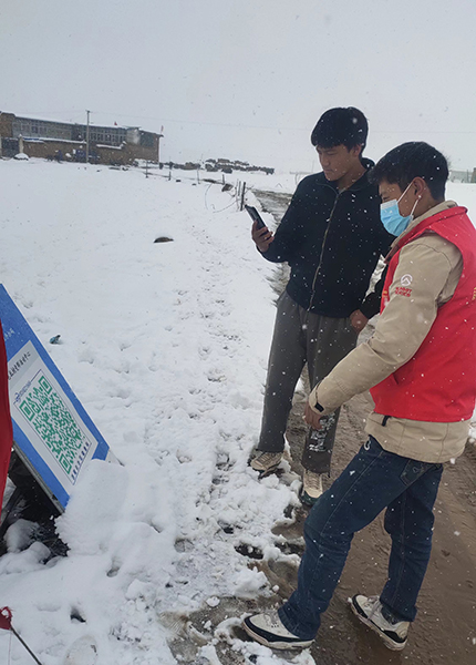 10月25日记者采访江措那一天,因为下雪路滑,有从四川成都过来的大货车在村口翻车,江措他们一直在忙碌着处理这事。他们第一时间把司机扶出货车,检查他的身体状况,然后联系当地派出所,把那些货物送到乡政府院子里协助保护。江措说,那一天是当志愿者期间最累也最难忘的一天。