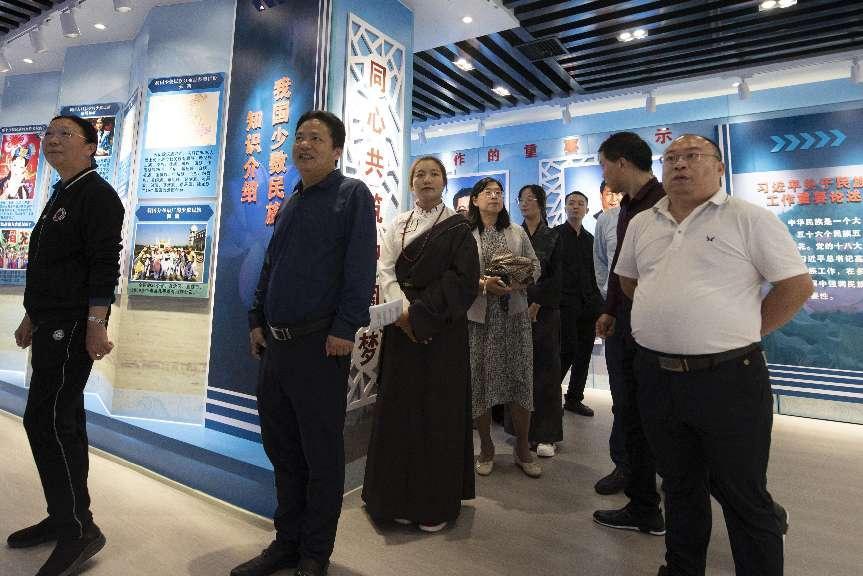 参观调研团成员考察了我校民族团结文化园、民族团结进步教育展览室,仔细观看民族团结文化园路旁的各色雕塑、宣传牌,纷纷举起手机拍照记录。在民族团结进步教育展览室,申晓伟向参观调研团介绍了我校的少数民族学生培养情况,获得了调研团成员的一致称赞。我校汉藏解说员的风采也给调研团成员留下了深刻印象。