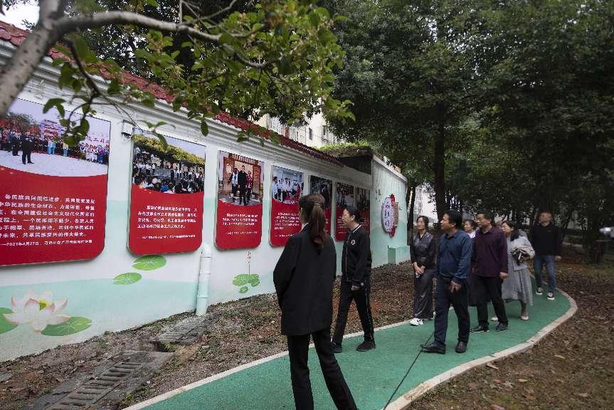 为进一步深化民族团结进步示范创建活动,加强民族团结交流学习,10月19日下午,市委统战部副部长、市民宗局局长陈健庄,四级调研员李海波,市委统战部民族科、宗教科工作人员,娄底各县市区民宗局局长、民宗组长,市经开区组织工作局副局长、统战联络科科长一行三十余人组成的娄底市民族团结进步示范创建工作互观互检活动参观调研团,到我校参观民族团结进步教育基地并实地了解我校民族团结进步教育工作。我校党委委员、副校长申晓伟,党委宣传统战部长王宗凡、副部长刘艳陪同参观。