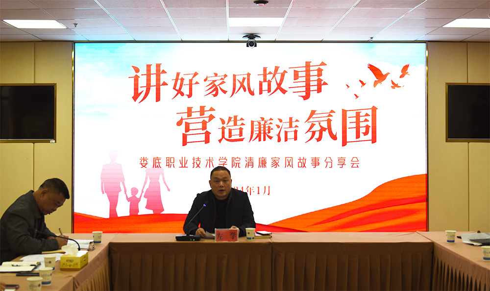 1月12日,我校在视频会议室举行清廉家风故事分享会,纪委书记左学主持,学校全体工会委员、女工委员、各分工会主席、副主席,各工会组长、纪检监察处、工会全体同志参加。