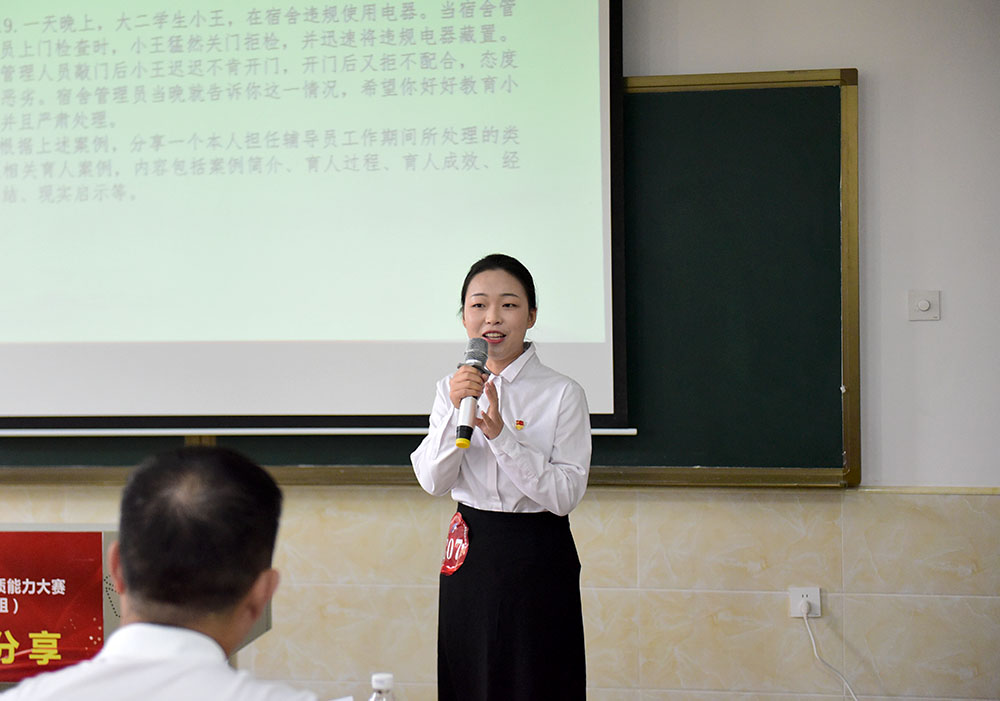 本次比赛设有基础知识测试、描述定位、育人案例分享三个环节,全面考察辅导员对相关理论知识的掌握程度及共同研讨、辨析、解决学生工作中复杂案例的能力,综合运用理论分析问题、研判问题、解决问题的能力,对学生特征、学生成长成才规律的了解把握程度及对学生的教育引导能力、解决理论困惑和实际问题的能力。