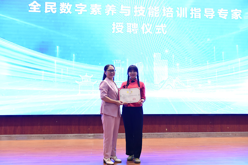 我校党委委员、副校长游新娥(左一)为湖南省全民数字素养与技能培训指导专家颁发聘书