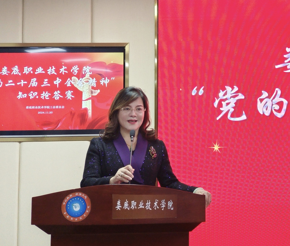 为深入学习贯彻党的二十届三中全会精神,切实将学习全会精神作为党的创新理论武装工作的重要任务,引导广大工会干部统一思想、行动,11月20日,校工会在综合楼视频会议室举行“党的二十届三中全会精神”知识抢答赛。校工会常务副主席曾素纯、副主席刘轶中出席,全体工会干部参加比赛。