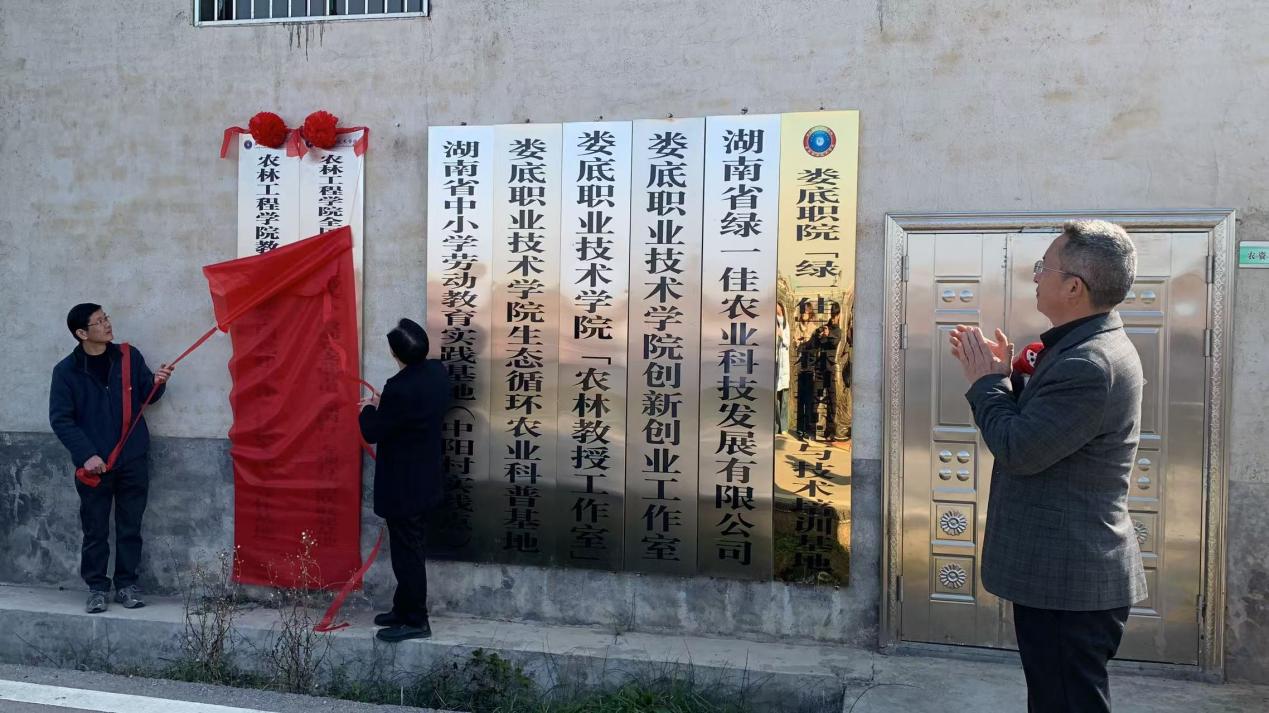 随后,全体师生步行前往娄底职院校企合作单位----娄底职院绿一佳农林科技示范与技术培训基地(湖南省绿一佳农业科技发展有限公司),学校组织部部长吴文贵与农林工程学院副院长谢大识共同为“农林工程学院教师党支部全国党建工作‘样板支部’合作基地”“农林工程学院全国高校‘双带头人’教师党支部书记‘强国行’专项行动团队联建基地”授牌,标志着双方合作迈向新的高度。