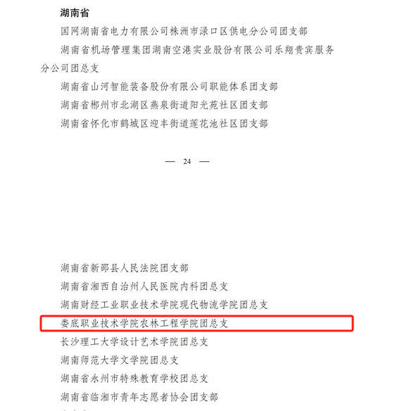 在乙巳蛇年春节即将到来之际,共青团中央发布了“全国五四红旗团委(团支部)、全国优秀共青团员、全国优秀共青团干部拟表彰对象公示”,湖南省娄底职业技术学院农林工程学院团总支荣获“全国五四红旗团支部”这一荣誉。