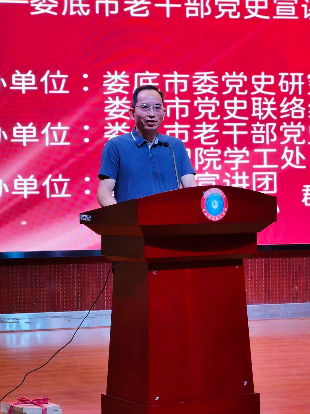 活动在庄严而热烈的氛围中拉开帷幕。市老干部党史宣讲团团长张经发宣布活动正式开始。娄底职院党委书记张征澜代表学校致欢迎辞,对宣讲团的到来表示诚挚感谢。市委党史研究室四级调研员刘作杰出席并发言,强调党史学习教育在新时代的育人作用,鼓励青年从红色基因中汲取前进力量。