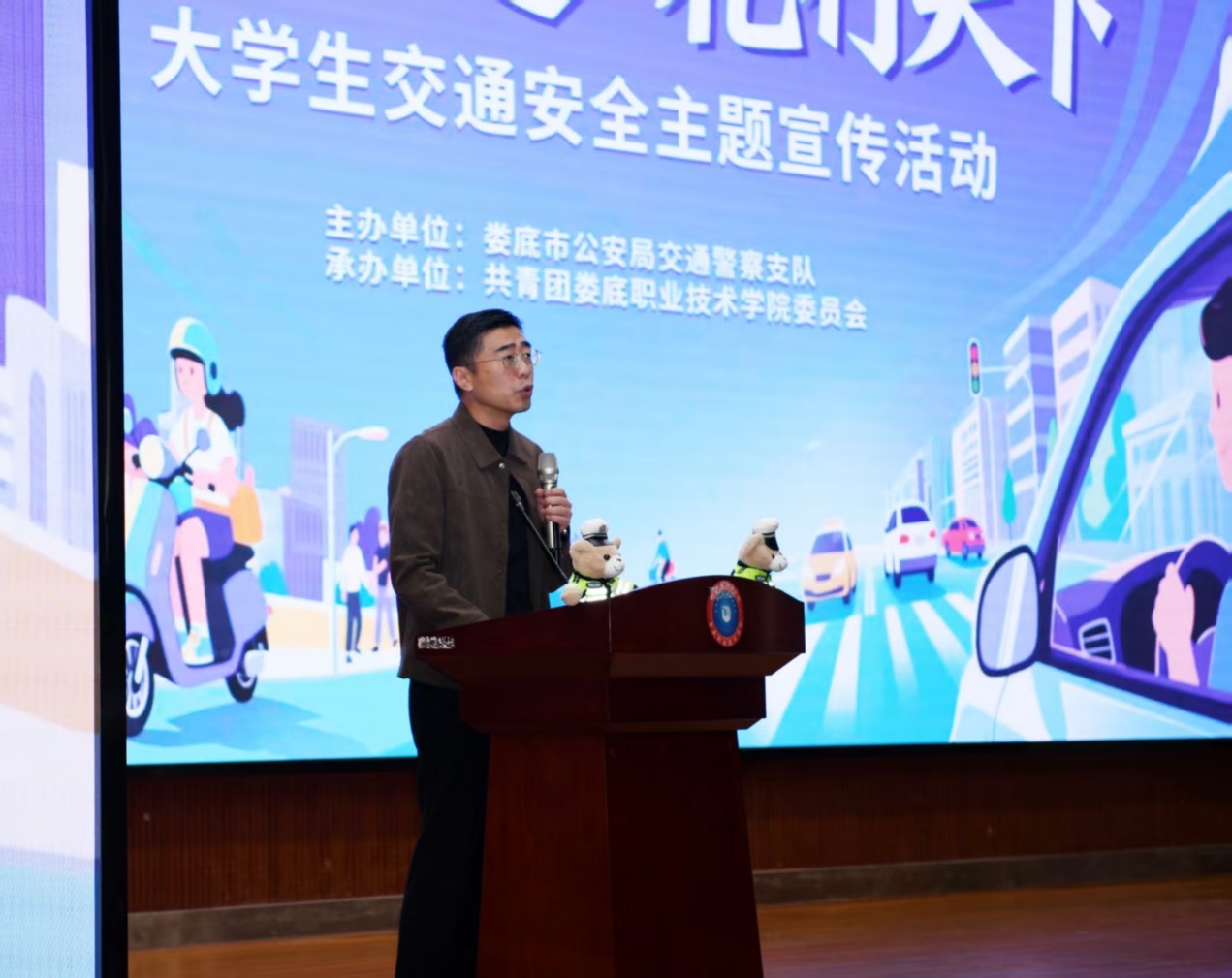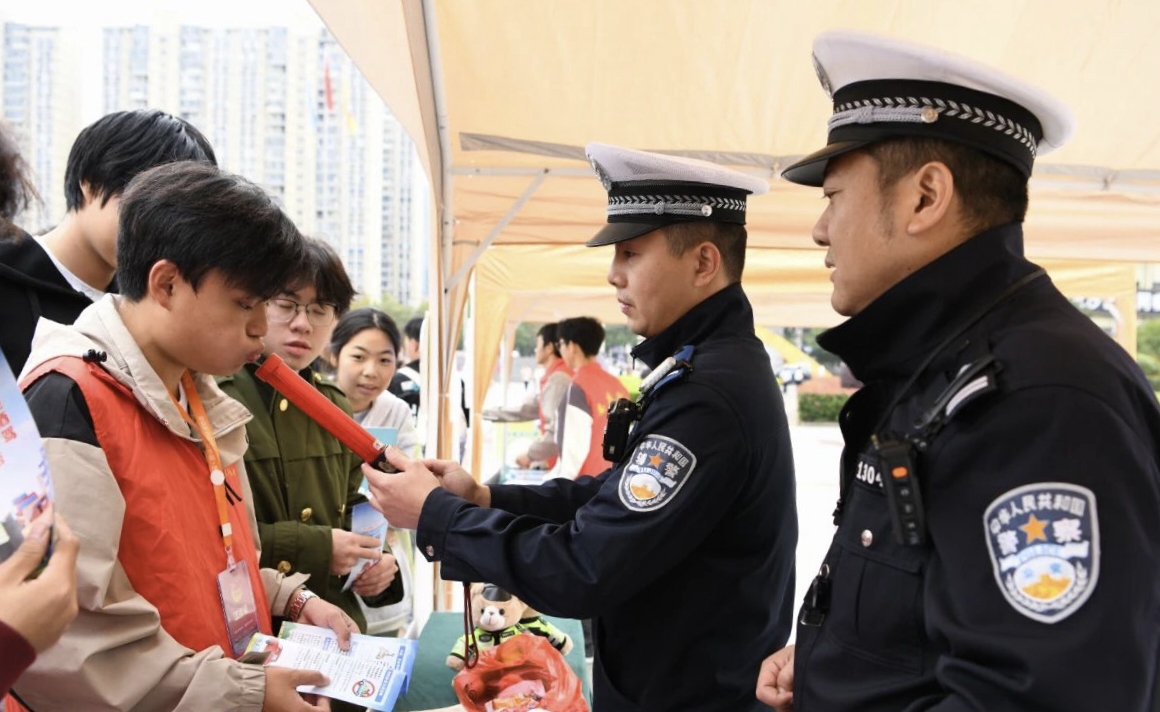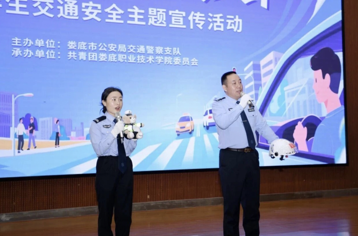 为进一步增强大学生交通安全意识,营造安全、文明、和谐的校园交通环境,11月6日上午十点半,由娄底市公安局交警支队主办、娄底职业技术学院承办的“文明交通 礼行天下”大学生交通安全宣传活动在我校新培楼和文化广场顺利开展。活动以内容丰富、形式多样的宣传教育,为师生们带来了一堂生动深刻的交通安全课。