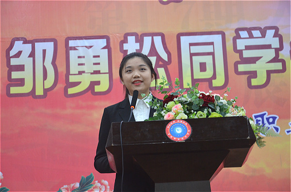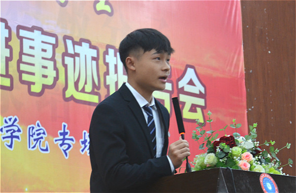 报告会上,先进事迹报告团成员李凝玉、王浩杨和邹勇松的辅导老师易亭亭分别作演讲报告,先后讲述了邹勇松同学的先进事迹。报告会还播放了光明日报社拍摄的《世界以痛吻我 我要报之以歌》专题视频。