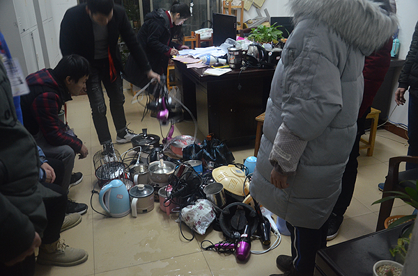晚八点半,安全隐患排查工作动员大会在主教楼110举行,学工处处长李规、副处长肖靓对此次排查工作进行了安排,保卫处处长张明、副处长伍琳对具体流程进行了指导,随后,全体人员分组分赴各栋寝室进行仔细排查,工作组对寝室内违规使用大功率电器、私藏违禁管制刀具、私养宠物等方面开展了一丝不苟的检查,并填写宿舍安全排查表,将违禁物品进行分类登记,对发现的问题及时进行处理,对违规人员作了教育。在排查过程中,工作人员同时向学生传达了学校关于寝室安全、用电安全等的管理办法,提醒督促学生做好寝室卫生,营造良好的学习生活环境。(李珊 黄琼)