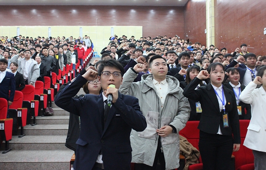 大会第二环节,肖靓解读了“讲文明,爱劳动”主题教育实践活动的实施方案,具体安排了文明劝导、纠察指导、热爱劳动等相关工作的开展。文明建设管理站站长17检修一班宋超林同学带领所有学生干部进行了创文宣誓。