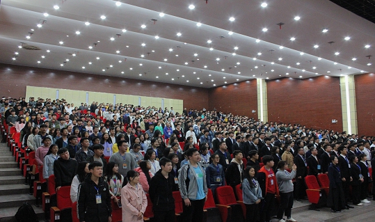 大会第一环节中,阳娟宣读了2019年校学生会、校团委、学联社干部名单,刘媛为2019年校团委、学联社干部授牌,李规为2019年校学生会干部授牌。