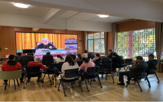 11月13日下午,学生工作处、团委在创新创业学院创客中心路演大厅开展教职员工政治理论学习,集中观看了教育部部长陈宝生学习贯彻党的十九届五中全会精神中央宣讲团报告会视频,学工处处长李规、团委书记刘媛与教职工参加学习。