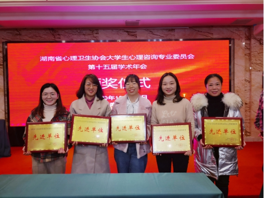 12月5日至6日,湖南省心理卫生协会大学生心理咨询专业委员会第十五届学术年会在长沙召开。会议表彰了一批心理健康教育先进单位和先进个人。我校荣获“2019-2020年度大学生心理健康教育先进单位”,学生工作处处长李规、大学生心理健康教育中心阳帆老师被评为“2019-2020年度湖南省高校心理健康教育先进个人”,我院大学生心理健康协会被评为“2019-2020年度湖南省高校优秀心理类学生社团”。