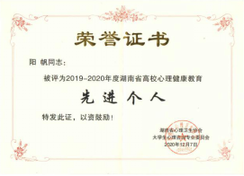 “2019-2020年度湖南省高校心理健康教育先进个人”⠂༯span>