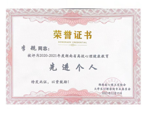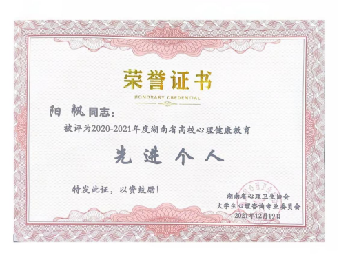 “2020-2021年度湖南省高校心理健康教育先进个人”
