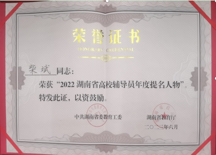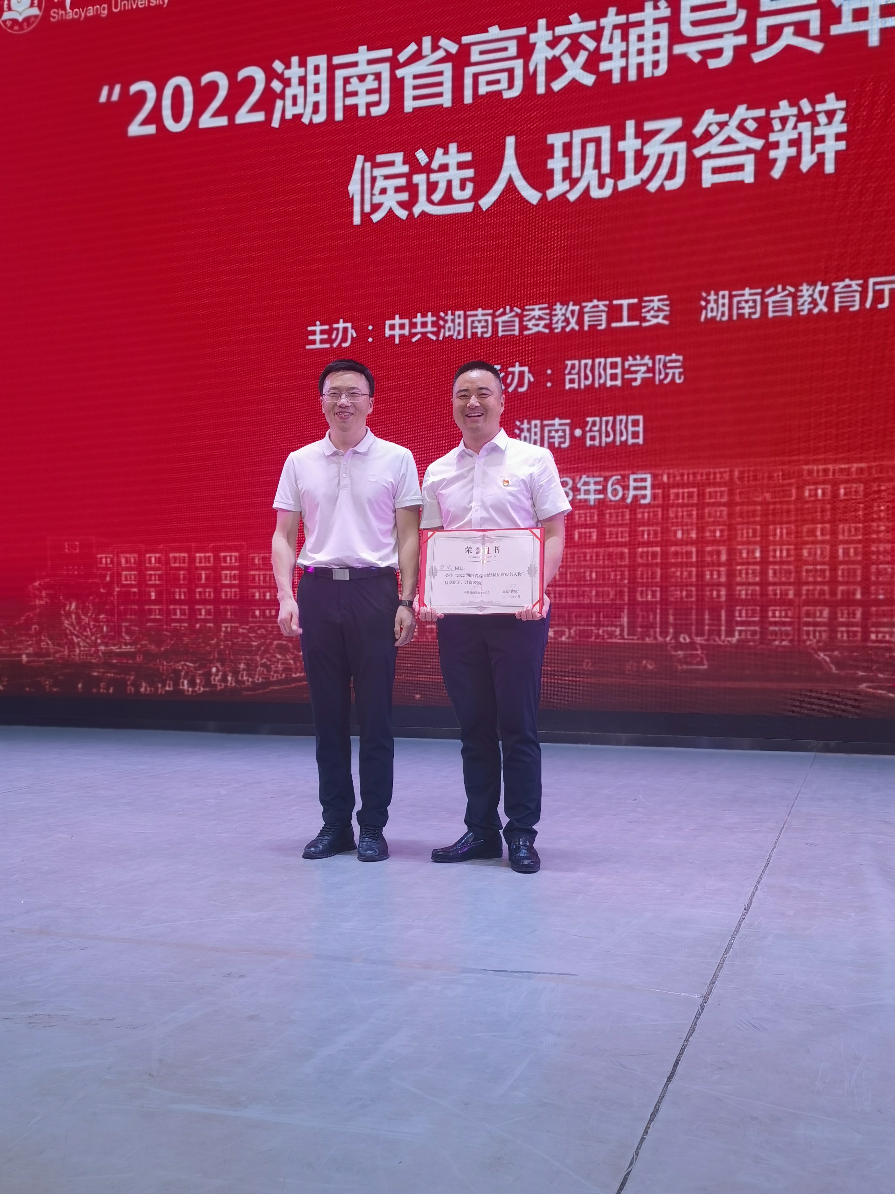 6月14日下午,由中共湖南省委教育工作委员会、湖南省教育厅举办的“2022湖南省高校辅导员年度人物”候选人现场答辩会在邵阳学院举行,我校机电工程学院学工副院长柴斌获评“2022湖南省高校辅导员年度提名人物”称号。