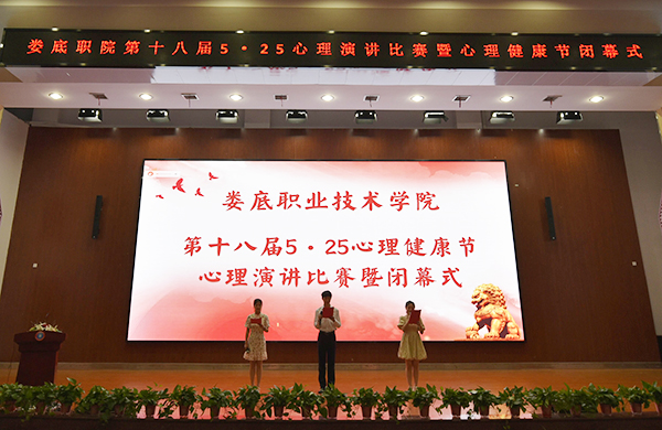 6月15日下午,我校在新培楼学术报告厅举办了第十八届“5·25”心理健康节闭幕式暨“青春践行二十大 润泽心灵向未来——我的心灵成长故事”演讲比赛。党委委员、副校长申晓伟、学工处处长李规、副处长肖靓、学工处副处长兼心理健康教育中心主任阳帆、各二级学院学工副院长、专职辅导员、学生代表600余人参加闭幕式。