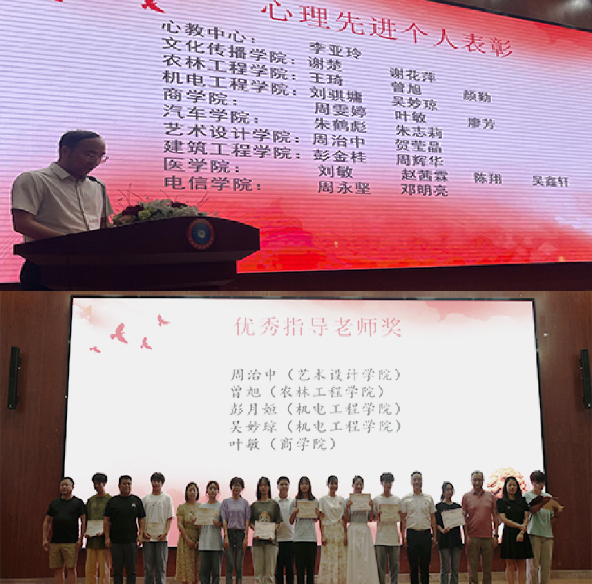 随后,申校长和各二级学院学工副院长,分别为2022-2023年度先进心理健康工作者、优秀心理委员、微电影获奖者、演讲比赛获奖者颁奖。