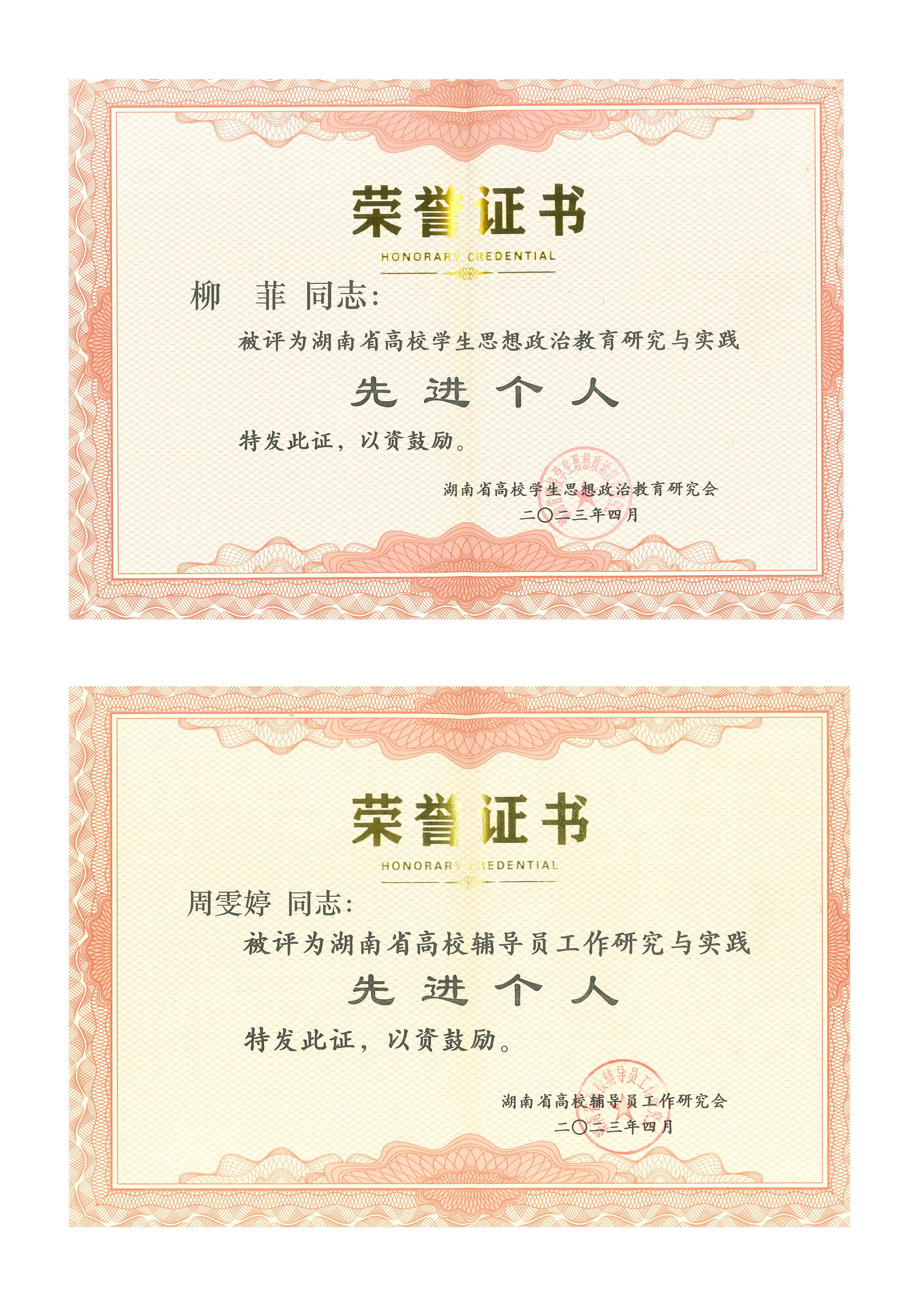 4月25日,湖南省高校辅导员工作研究会、学生思想政治教育研究会2022年年会在湖南工学院举行。会议现场表彰了2022年湖南省高校辅导员工作研究与实践先进单位、湖南省高校学生思想政治教育研究与实践先进单位。娄底职业技术学院荣获2022年湖南省高校辅导员工作研究与实践先进单位荣誉称号,据悉,我校已连续两年获得该荣誉;商学院学工副院长周雯婷获得“2022年湖南省高校辅导员工作研究与实践先进个人”称号;农林工程学院辅导员柳菲获得“2022年湖南省高校学生思想政治教育研究与实践先进个人”称号。