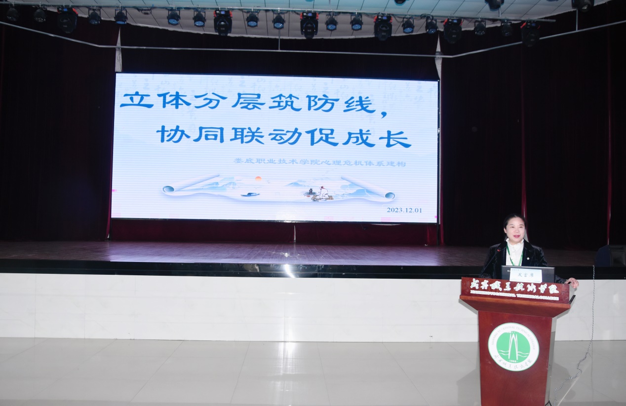此次会议旨在共同探讨心理危机干预与社会治理服务工作,进一步完善社会治理格局,创新社会治理方式,打造共建共治共享的社会治理格局、培育积极社会心态,助力实现健康幸福中国。在职业院校心理危机干预高质量发展分论坛上,阳帆以“立体分层筑防线,协同联动促成长”为题,围绕强化顶层设计、建强专业队伍、做实危机预防、联动家校医社、提升心理素养等五个方面介绍了我校心理健康教育工作在心理危机干预方面的实践探索、取得的成效及今后发展的思考。总结发言中,中国心理学会危机干预工作委员会委员、湖北省心理学会常务理事、华中师范大学心理健康教育中心主任吴才智教授高度肯定了我校心理危机干预工作。