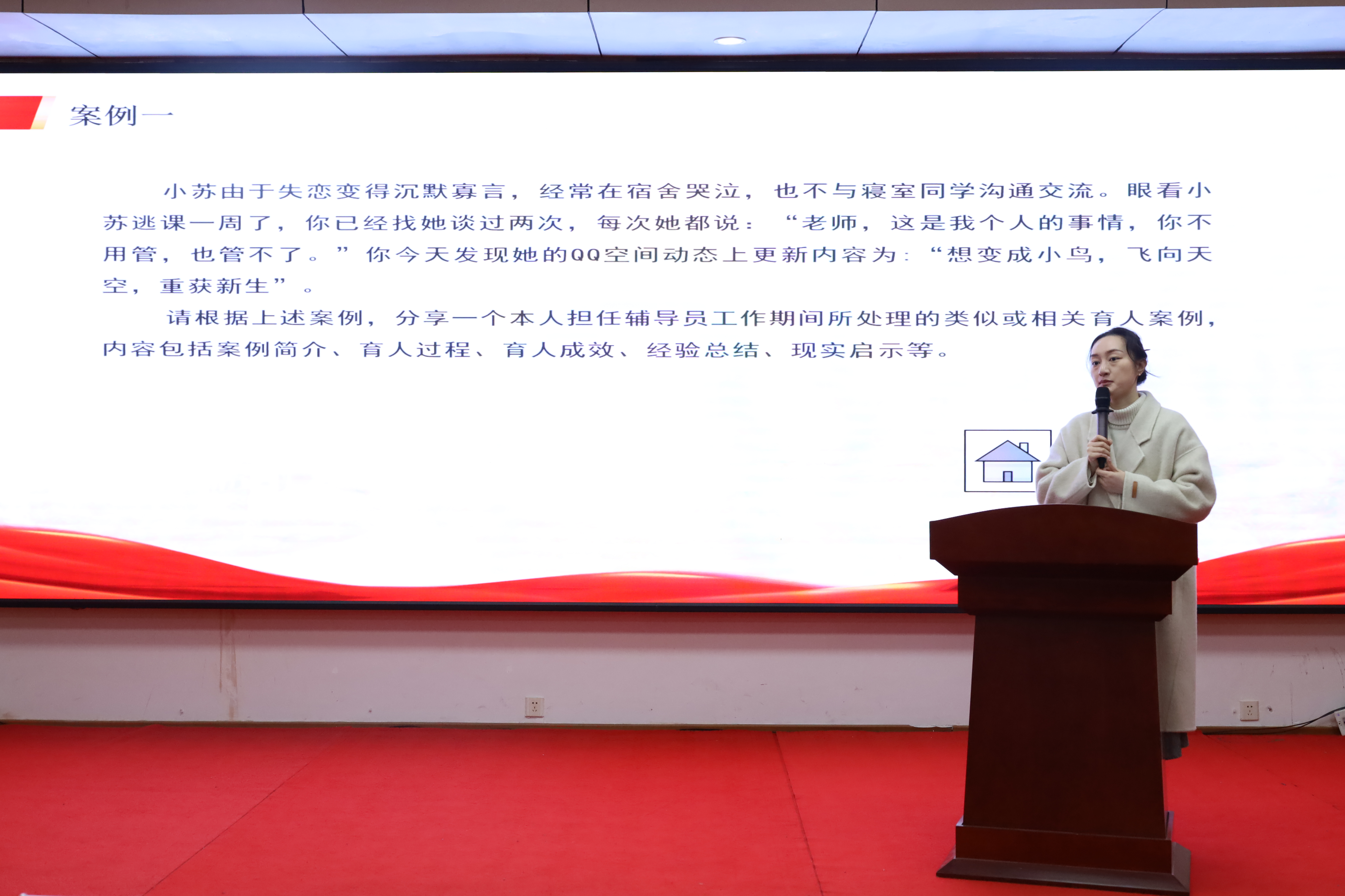 本次辅导员素质能力大赛分为初赛和复赛两个阶段。初赛赛项为基础知识测试和育人案例分享两个环节,全体专职辅导员参加初赛,根据初赛成绩选拔出17名辅导员角逐复赛奖项。