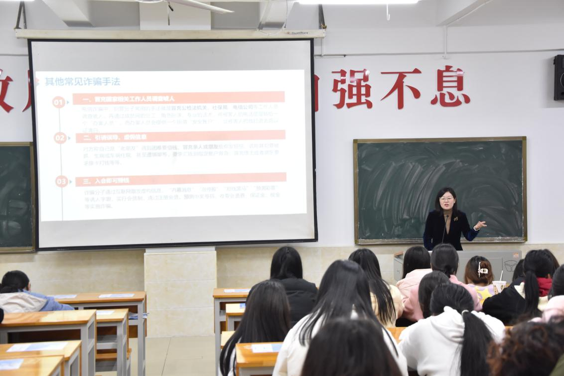 李杰通过一系列真实案例,深入剖析了电信网络诈骗的犯罪手法、特点和危害。还针对当前金融市场的热点问题和风险点,为大家普及了金融知识,包括如何识别合法金融机构、如何选择合适的金融产品、如何防范非法集资等。她提醒广大师生要树立正确的金融观念,增强自我保护能力,避免陷入金融诈骗的陷阱。