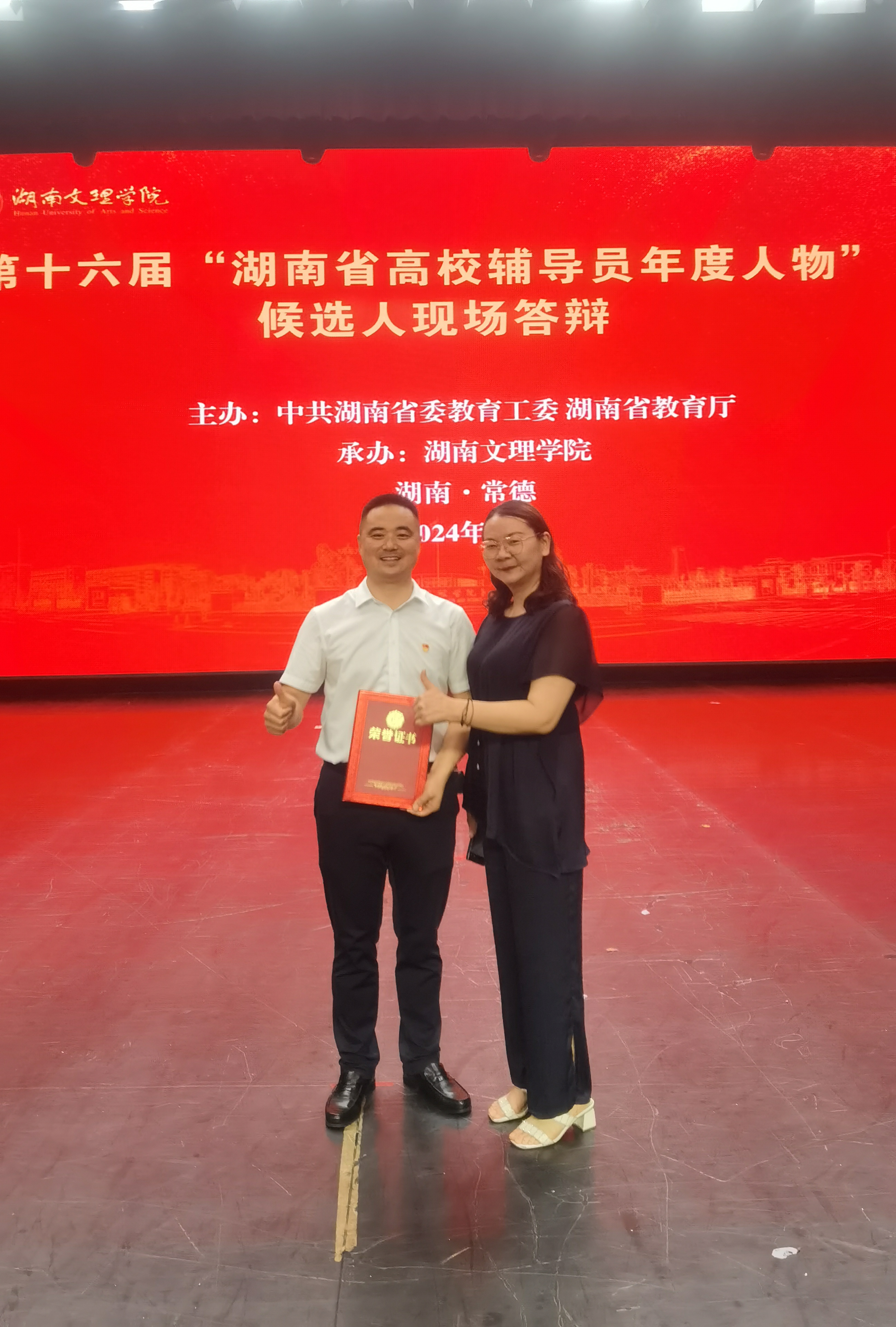 近年来,学校党委行政高度重视辅导员队伍建设,持续推进辅导员队伍向专业化、职业化、专家化发展,凝聚培养社会主义建设者和接班人的磅礴力量。柴斌连续两年获得“湖南省高校辅导员年度提名人物”荣誉称号,是中共湖南省委教育工委、省教育厅对我校辅导员队伍建设工作的充分肯定,彰显了我校辅导员队伍的整体水平和职业素养,这将激励和带动我校更多的辅导员教师坚定职业理想,争做行业先锋。