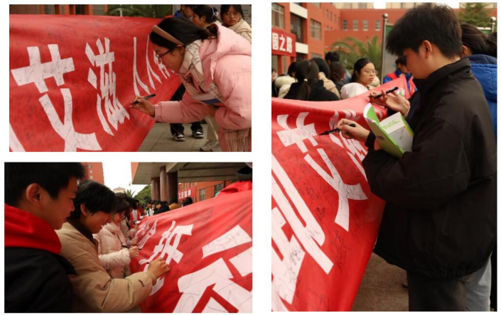 我校在综合校区主教学楼前举行了“珍爱生命 携手抗艾”宣传教育周启动仪式,志愿者们在活动现场组织全校师生集体签名,领取艾滋病防治知识手册,为同学们普及预防艾滋病的相关知识以及艾滋病的传播途径,正确提高同学们对艾滋病的认识以及防艾知识的知晓率,以此扩大预防艾滋病宣传教育的影响力,让大家在生活中时刻认识到艾滋病的危害并自觉做好防范工作,积极营造校园防艾宣传教育的氛围。