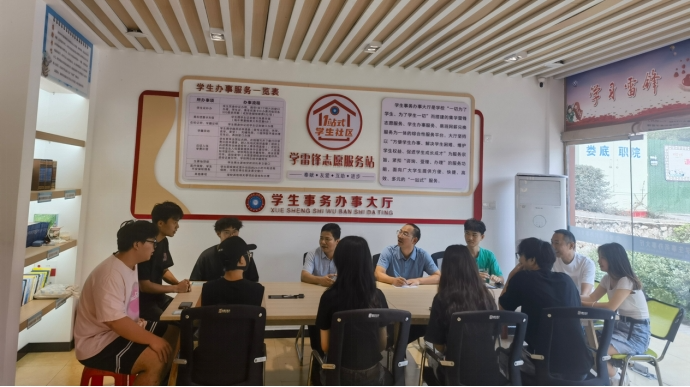 随后,申晓伟率学工队伍“下沉一线”,与学生“零距离交流,心贴心倾听”,深入地了解学生们的思想、学习、生活情况,同时也让同学们对学校宿舍管理、后勤服务保障工作提出自己的建议和意见。
