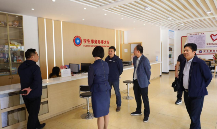 5月12日上午,张家界航空工业职业技术学院党委委员、副校长万友良率队一行8人莅临我校学习交流,学校党委委员、副校长申晓伟、学工处处长李规、后勤服务中心主任邹涛、保卫处处长张明、计划财务处处长周琳、学工处副处长邱玉贵等热情接待并陪同考察交流。