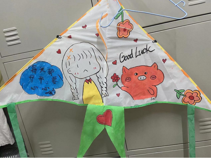 同学们前往学生事务服务大厅领取空白风筝进行自主DIY,将自己的风筝彩绘出最靓丽的色彩,并在风筝上写上对自己和他人的美好心愿,等待在有风的日子将风筝放飞,让风筝带着自己的梦想远航。