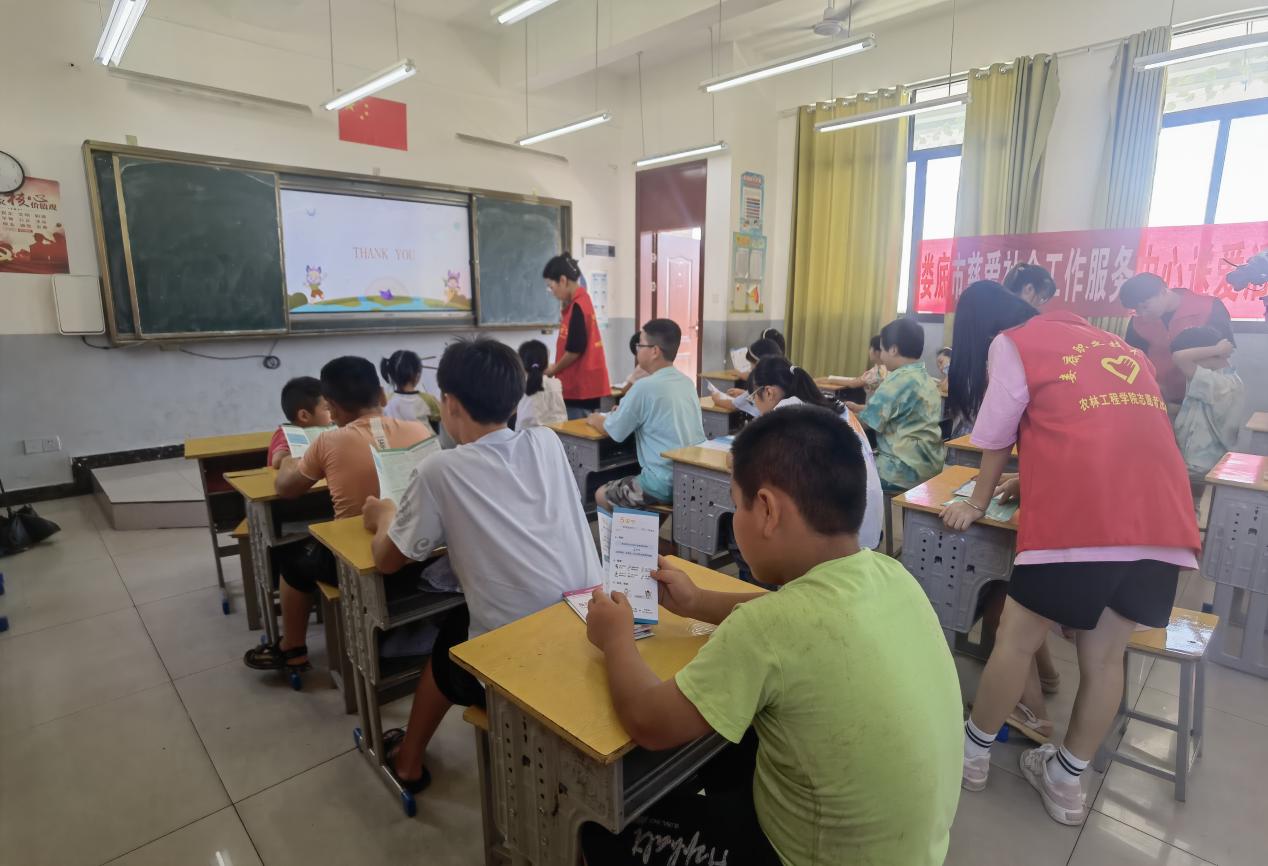 在科普活动中,志愿者们围绕留守儿童身心健康需求,选取最为贴近日常生活的心理健康知识进行科普宣传。该科普活动旨在广泛传播心理健康知识,通过娄职学子的力量影响更多儿童投身于提高意识、主动预防、积极行动的队伍,守护自身心理健康。调研团围绕“和谐人际”“情绪宣泄”“压力应对”“睡眠管理”四个主题,精心设计了科学性与通俗性兼具、图文并茂、语言通俗易懂的科普手册。手册内容不仅涵盖相关心理健康知识,还详细介绍了生活中常见的心理健康问题及应对之策,致力于引导同学们将所学知识切实应用到实际生活中,力促达到人人想健康、人人懂健康、人人都健康的良好氛围。