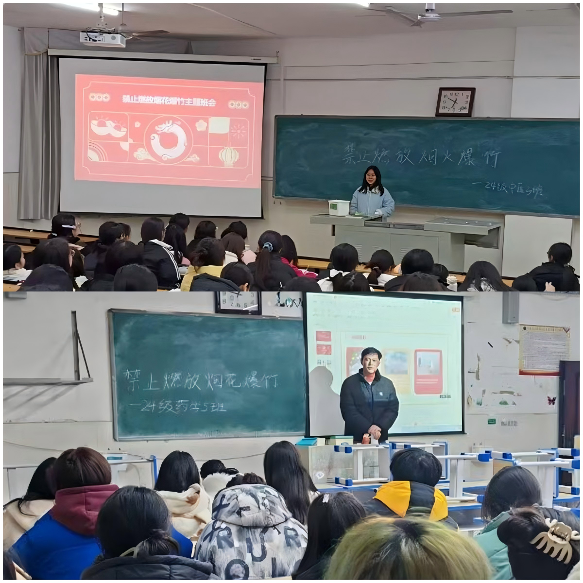 辅导员老师在班会上详细解读了娄底市关于禁止燃放烟花爆竹的相关法律法规,一起学习了《娄底职业技术学院禁燃烟花爆竹倡议书》,使学生们明白禁燃不仅是一种环保倡导,更是一种法律责任与义务,进一步强化学生的自我约束意识与责任感。