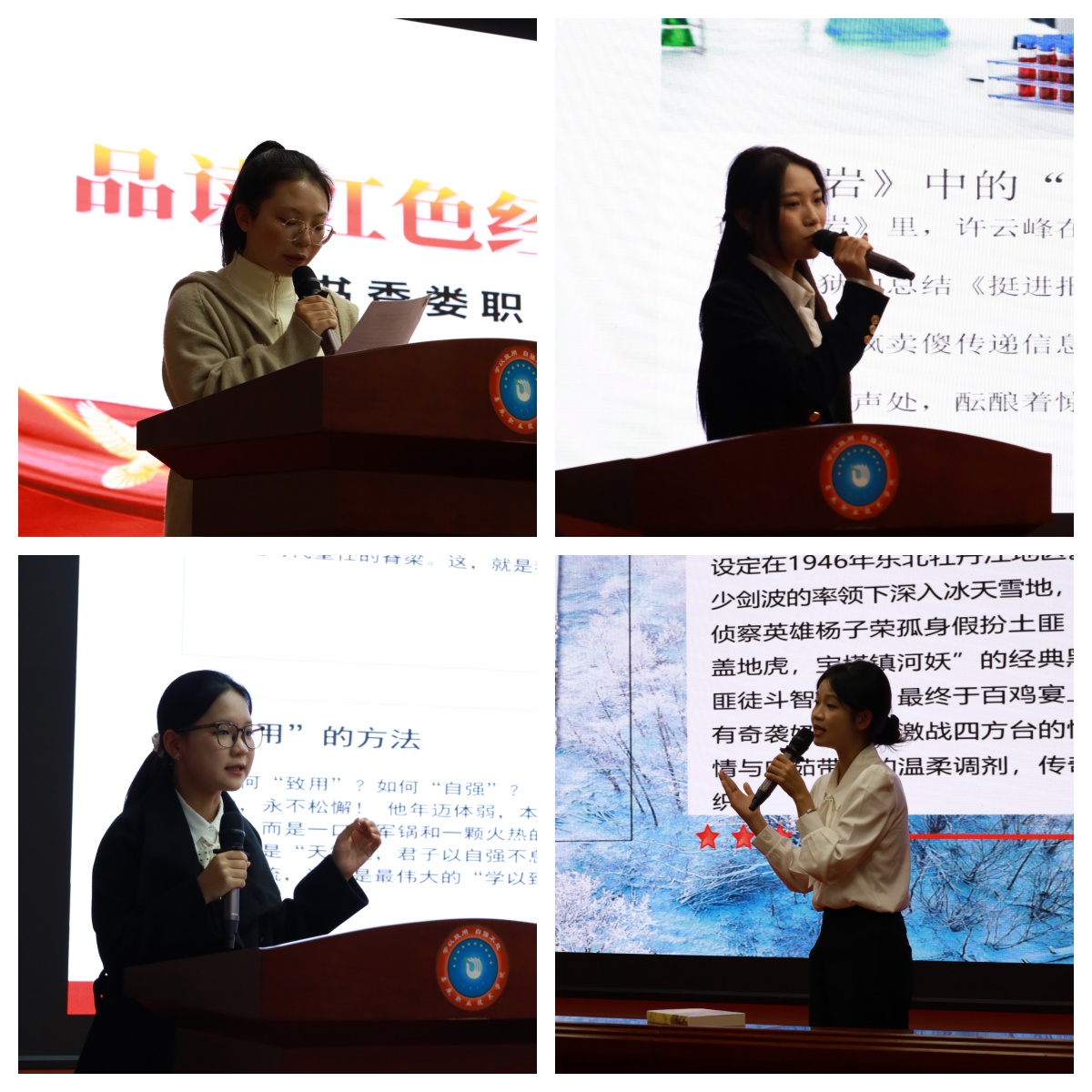 本次读书分享活动聚焦中国当代文学史上的红色经典标杆 ——“三红一创”(《红岩》《红日》《红旗谱》《创业史》)与 “青山保林”(《青春之歌》《山乡巨变》《保卫延安》《林海雪原》)系列作品。这些书籍生动记录了革命岁月的热血征程与建设时期的奋斗足迹,蕴含着坚定的理想信念和崇高的精神追求,是滋养青年学生成长的精神富矿。自读书活动启动以来,各二级学院积极响应,通过院内初赛层层选拔,最终推送优秀选手晋级校级决赛,全校学子参与热情高涨,形成了“人人读经典、人人谈感悟”的良好氛围。