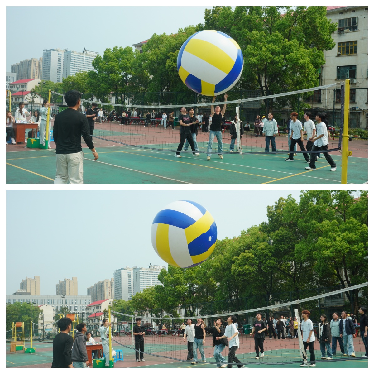 超级气排球是校园微运动的热门项目,学子们自发组队、默契配合,每一次奋力扑救、每一次精准传接,都凝聚着团队的智慧与力量。场边观赛的同学热情高涨,呐喊声、加油声此起彼伏,将赛场氛围一次次推向高潮。超级气排球微运动,不仅为学子们提供了释放学业压力、切磋运动技艺的平台,更强化了团队协作意识,让大家在轻松竞技中感受运动的快乐。