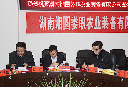 三方代表分别在协议上签字。在各位领导和专家的见证下,湖南湘圆娄职农业装备有限公司正式启动。据悉,三方分期出资500万,租赁我院第二期实习工厂厂房及第一期办公室进行办公、生产。产品以收割机等农用机械为主,多项产品可享受政府农机购置补贴。我院将发挥人才、技术和资源优势,湖南湘圆娄职农业装备有限公司也将为我院搭建产、学、研合作平台,为教师下企业实践、学生实习提供更多的机会。(欧阳琦)
