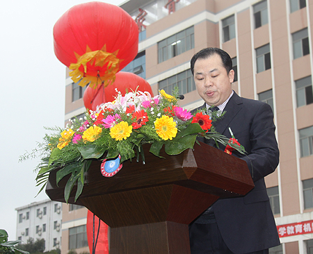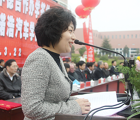 出席仪式的领导及嘉宾有中国汽车文化促进会会长申崇明、娄底市人大常委会副主任曾贯一、娄底市人民政府副市长鄢福初、省教育厅职成处处长张大伟、中德诺浩(北京)教育投资有限公司总经理许婕、F+U萨克森职业培训学院董事长Meinhold、市人民政府副秘书长梁克和、省教育厅职成处副处长朱日红、市发展与改革委员会主任杨金含、市经济信息委员会主任聂斌全、市财政局总会计师旷凌云、市人力资源与社会保障局副书记、副局长肖卫龙、市教育局副局长张怡南、我院在家的院领导,娄底市高级技工学校党委书记黄迪军、娄底幼儿师范学校校长陈欣荣、冷水江工业学校校长严武、潇湘职业学院院长助理梁直升、省教育厅职成处主任刘婕、F+U萨克森职业培训学院董事长助理李红、市汽车行业商会常务副会长李建新、秘书长梁浴涛、市工贸中专副校长张焕新、娄底湘中文武学校校长刘卫华、双峰职业中专校长戴向阳、新化职业中专校长罗光、涟源工贸职业中等学校副校长颜雄林、我院院校合作单位、市经济开发区中阳村支书陈湘春、湖南湘圆娄职农业装备有限公司总经理陈远洪、湖南华南煤矿机械有限公司董事长梁健松。教育部职成司、株洲职业技术学院等单位发来贺电。仪式由市人民政府副秘书长梁克和主持。