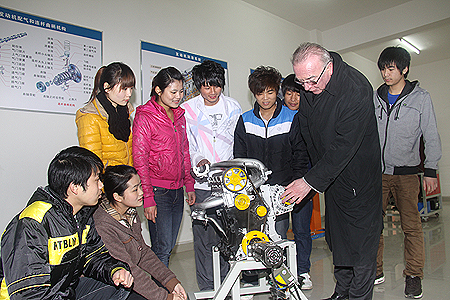 仪式结束后,F+U萨克森职业培训学院董事长Meinhold饶有兴致地参观了我院汽车学院实训室及展示厅,并当场为学生上起汽车传动结构课来。中德诺浩(北京)教育投资有限公司总经理许婕和我院院长杜祥培与学生进行了深入交流。展示在汽车学院楼前的宝马、路虎、凯迪拉克一排靓车更是吸引了无数眼球,实训教师现场为学生讲解了车型、配置等基础知识。中新社、湖南日报、湖南教育电视台、娄底日报、娄底晚报、娄底广播电视报、娄底电视台、娄底新闻网等媒体对活动进行了全程采访。(欧阳琦 刘艳)