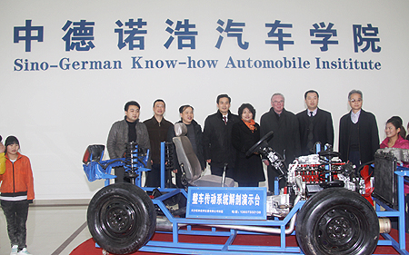 汽车产业是新世纪的朝阳产业,2010年我国汽车产销以1806万辆居世界第一。有关预测表明,全国汽车制造、维修行业每年需要新增近40万从业人员。高端技能型专门人才的匮乏,已经成为制约我国汽车产业发展的“瓶颈”。中德诺浩(北京)教育投资有限公司成立于2003年,由德国手工业协会发起,并由清华大学清华科技园(启迪控股)、德国F+U萨克森职业培训学院共同投资创办,专为奔驰、宝马、奥迪定向培养高端汽车服务人才。娄底职院中德诺浩汽车学院作为我院的二级学院,将引入全新德国职教模式,培养符合企业需要的高端汽车服务技能型人才,服务娄底市大力发展汽车产业的产业定位,更好地探索地方高职院校服务地方产业发展模式,打造娄底汽车行业人才培养的“黄埔军校”。