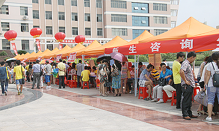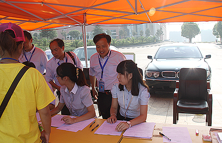 8月28日是我院2012级大专新生报到的第一天。迎风招展的红幅、气球、拱门将学院妆点得喜气洋洋。一大早,迎新车就从火车站、汽车站接来了一批批来自四面八方的年轻学子。一走进校门,就可以看到我院的新生报到点和服务台、咨询台在文化广场一字摆开。学子们在院系学生会干部带领下报到、缴费、入住寝室,一切井井有条。 杜祥培、刘自斌、袁其谦等院领导一早就来到报到现场视察、指导。相关部门负责人也一直在现场值守。各系部摆开宣传板,介绍各专业情况,有的还摆开学生作品展示台。一台奔驰s500和一台宝马745,再配上身穿中德诺浩统一工作装的教师,更是令汽车学院的报到台气场十足。报到现场的“绿色通道”,帮助有需要的学子办理助学贷款,讲解我院的助学金政策。娄底市质量监督局还派专业人员来校进行学生床上用品现场检测,严防“黑心棉”流入校园。 迎新工作领导小组组长刘自斌告诉记者,我院今年的迎新工作以“爱与责任”为主题,各部门积极配合,共同协作,希望通过积极主动、热情服务、简化程序、规范流程,充分展示我院人文关怀、管理水平、文化精神,真正体现我院“爱生如子”的风采和责任。(欧阳琦)