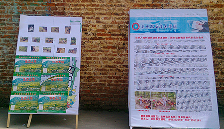 曾娜是我院10级畜牧大一班学生,今年6月毕业后,她回到了家乡新化,自办养殖场,喂养良种三黄鸡。她的鸡放养在山上,吃虫、吃草,再加上自配的玉米、豆粕等营养鸡食,生长得非常健康,肉质好,口感好,7月首批鸡上市,一下就卖光了。前段时间,曾娜回到母校,与老师、农林系学生创业中心取得联系,希望依托中心在娄底城区市场推广自己的良种鸡。创业中心的老师、学生非常支持曾娜的创业行动,他们利用休息时间,每次安排2-4人轮流在学院在周边的小区宣传推广。为首的豆鹏程同学告诉记者,创业中心在学院内已销售了80余只土鸡;在小区里推售也比较顺利,3个小时卖了5只。母鸡30元/斤,公鸡28元/斤,鸡蛋最受欢迎,2元一个一下就卖完了。“宣传板、鸡栏、盘秤、账本,加上鸡食、水,每天都要抬一大堆东西出来……我们体会了创业的不易,在销售过程中也学习了销售推广的技巧,收获蛮大的。”