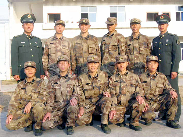 彭增国(第二排右一)与他带的新兵