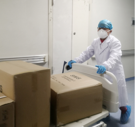 1月31日下午3点曾爱群和她的战友们进驻了湖北省黄冈市中心医院新院区——大别山区域医疗中心。根据专业所长,曾爱群被分工负责病区所有的物资申领配备管理和清洁消毒工作。