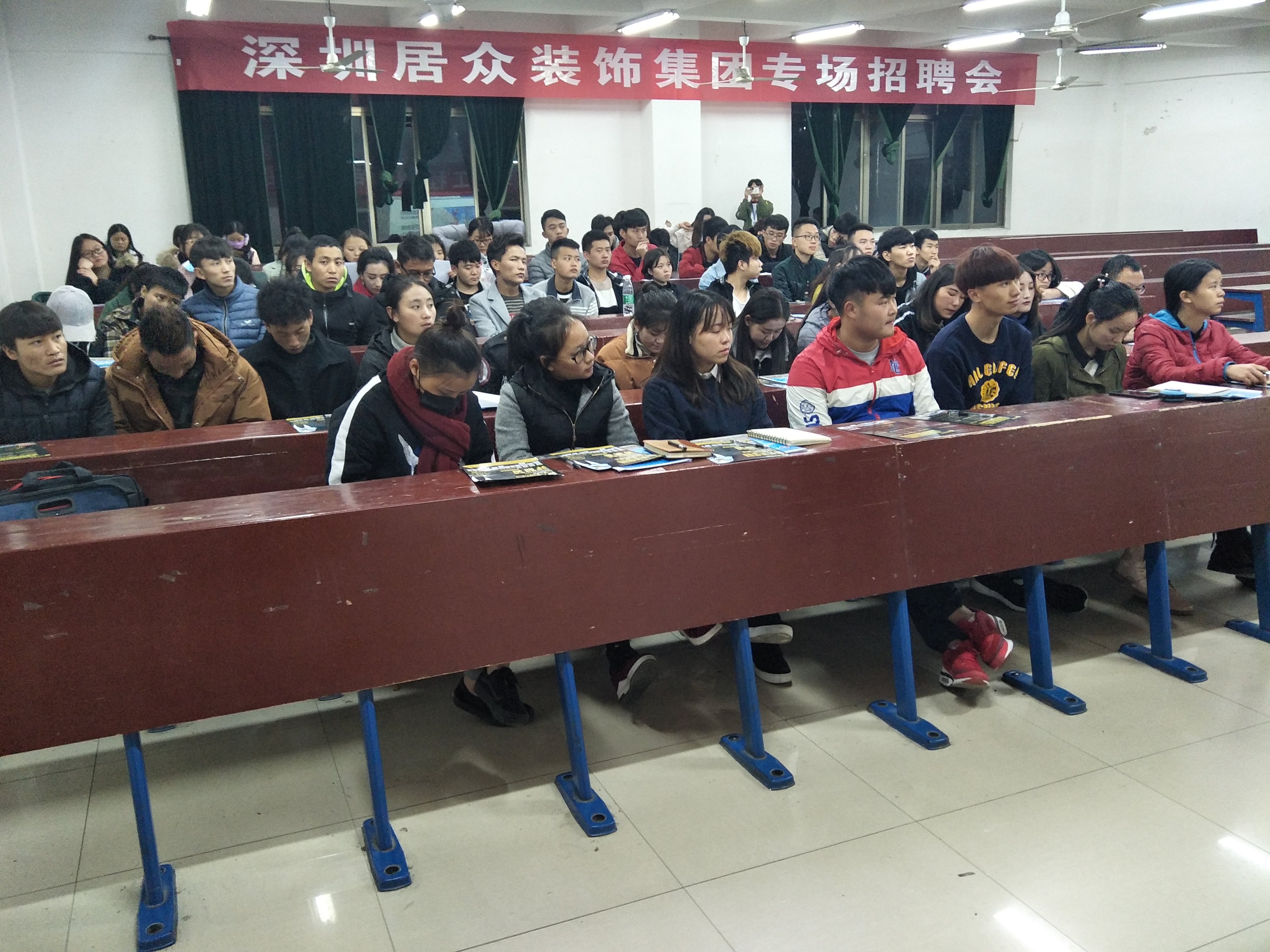 2017年11月24日晚八点在主教楼510召开了深圳居众装饰集团专场招聘会。由15级环境艺术和艺术设计专业所有学员参加。
