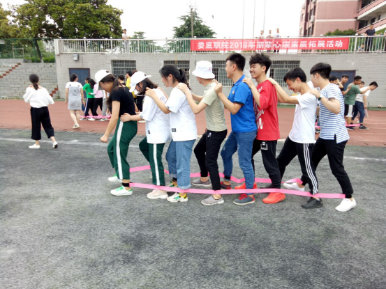 2018年5月17日,由大学生心理健康教育中心组织,各个二级学院于田径场参加朋辈素质拓展活动。此次活动的开展主要是为了进一步推进心理健康教育,着力培育师生理性平和、积极向上的健康心态,促进师生心理健康素质与思想道德素质、科学文化素养协调发展。我院由学工处干事徐维带领各班的心理委员及学生会心教部成员参与了此次活动。