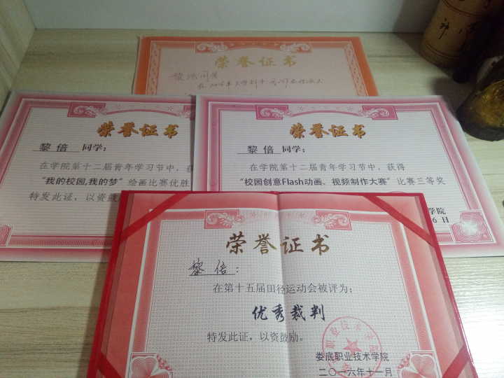 就是因为有他的这个态度,所以他才能在众人之中脱颖而出。他所获得的奖项不少,比较标志性的有第十五届运动会优秀裁判、优秀学生会干部,评上国家励志奖学全等。当然,每个人的成绩都不是白来的。他并没有刻意地去努力过什么,但他做每一件事都秉乘着,要么不做,要么就一直做,并且要做到最好的信念。信念的力量是很强大的,它可以让一个手无缚鸡之力的人,成为一个巨人。