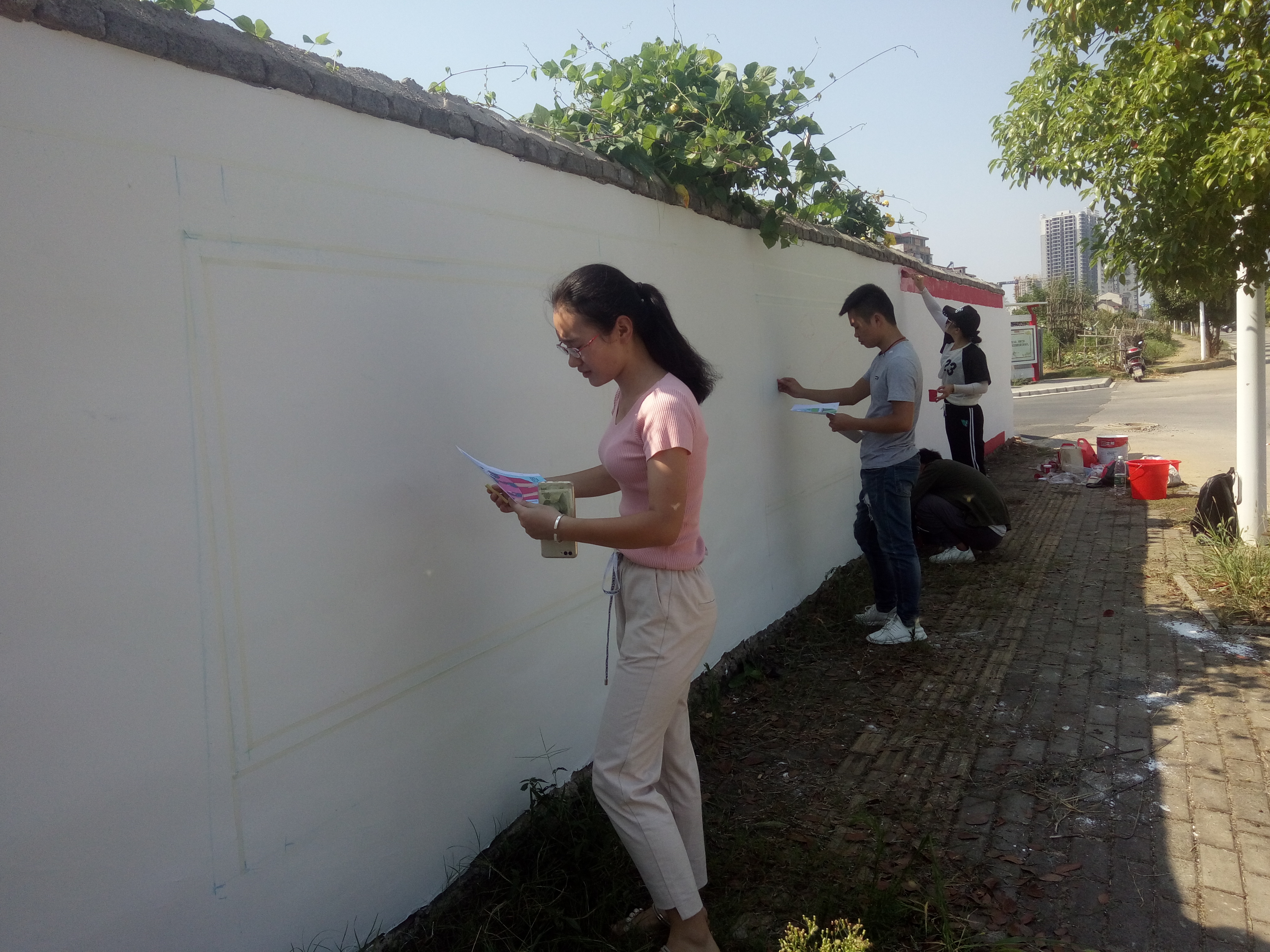 艺术设计学院为贯彻“十九大”精神,响应团中央的号召,按照学校校团委安排,立足本学院专业特色,组织专业队伍为娄底市娄星区清潭街道清沄居委会五天无偿绘制宣传墙画,进一步宣传党的十九大,结合创业创新并宣传本次双创的项目及含义。用大学生特有的热情和真诚进基层宣传党的十九大。参加此次三下乡的志愿者将运用所学专业知识服务农村,为国家健康扶贫添砖加瓦,贡献自己的一份力量。