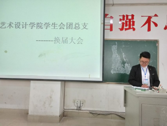 2018年12月13日中午12点30分,艺术设计学院学生会团总支换届大会于主教学楼110隆重召开。我院学工副院长刘建华,学工干事邓梁老师出席本次会议,16级学生会主席黎倍、团副赵飞云及17届18届学生会团总支全体成员参与本次会议.