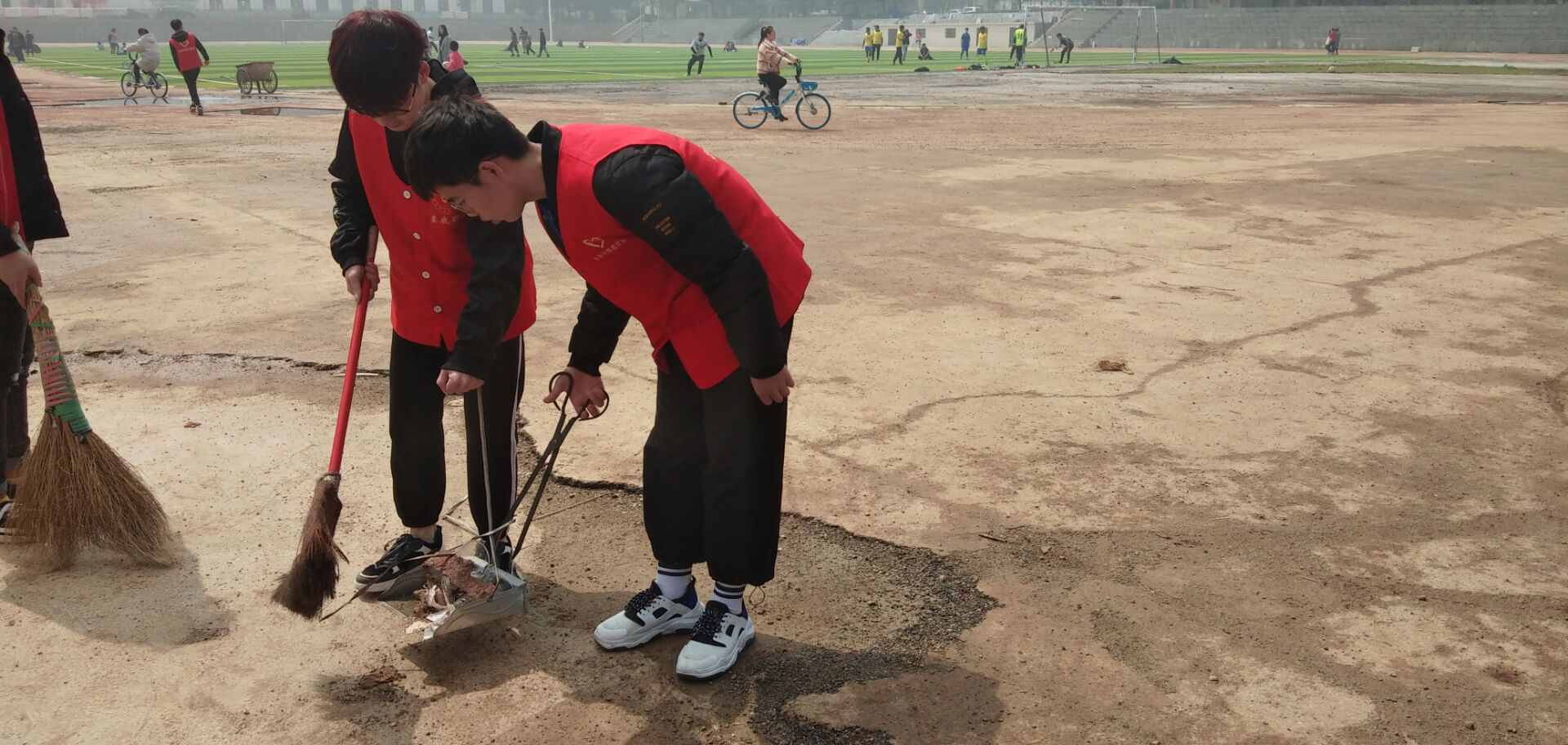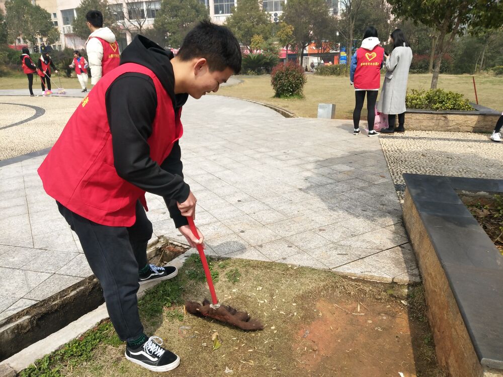 团支部副书记唐碧文对卫生区域划分为田径场和励志广场两个区域,田径场卫生由曾杰带领宿保部全体成员进行清扫,励志广场由唐碧文带领秘书处、学习部全体成员进行清扫。同学们拿着扫帚、铲子、垃圾篓、钳子,不怕脏不怕累,不放过任何一个卫生死角,相互配合、使各项清扫工作井然有序的进行,一个小时后将小道、草坪上的果皮纸屑、杂草清除得干干净净。